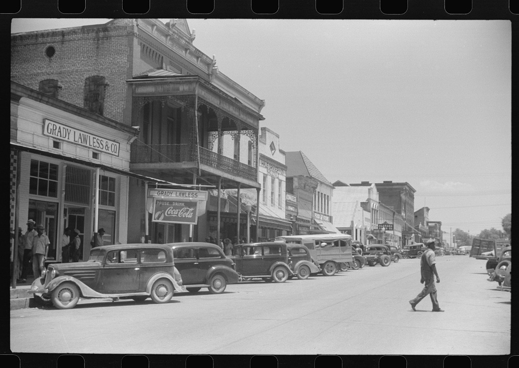 Delano, Jack, photographer. Main street of Greensboro, Alabama. Alabama Greensboro United States, 1941. May. Photograph. https://www.loc.gov/item/2017749564/.