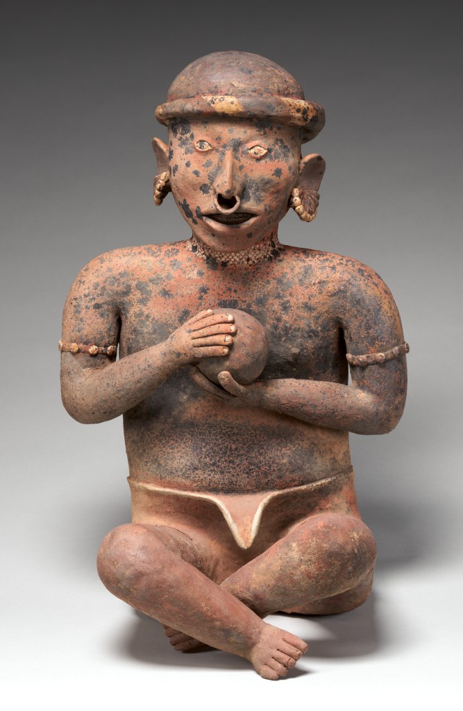 Covered in indigo Maya blue, this crocodile wasn’t just cute. Blow into it to whistle, shake it to rattle, and notice the raised bumps along its back, it’s likely reference cacao beans. Sound, symbolism, and wealth, all wrapped into one very overachieving instrument.
