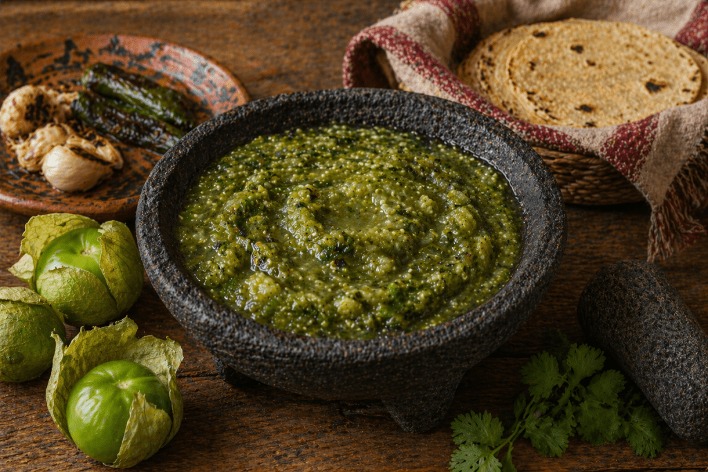Salsa Molcajeteada (1857 Mexico) – Roasted Tomatillo Salsa Made the Traditional Way